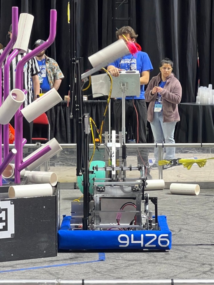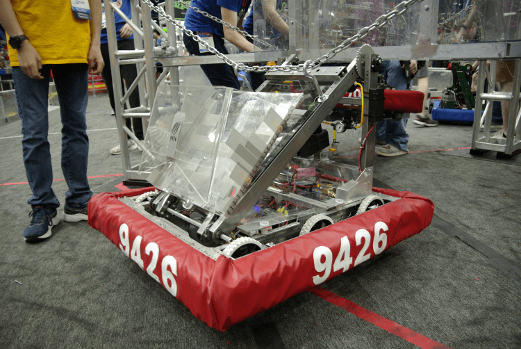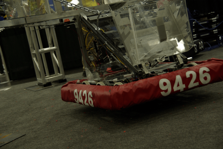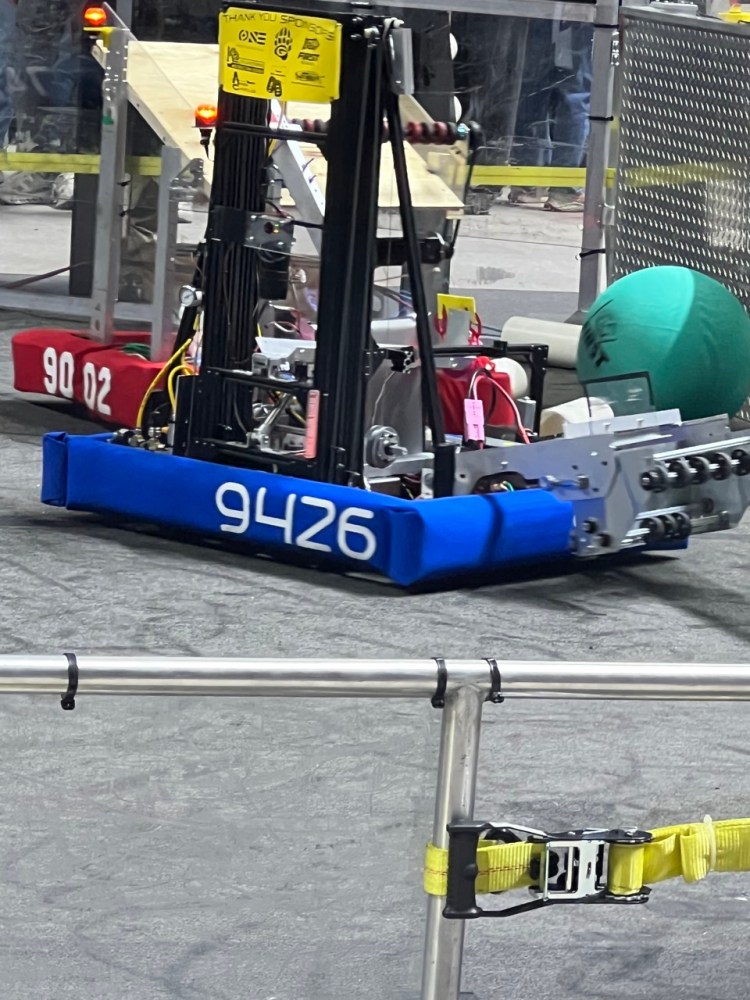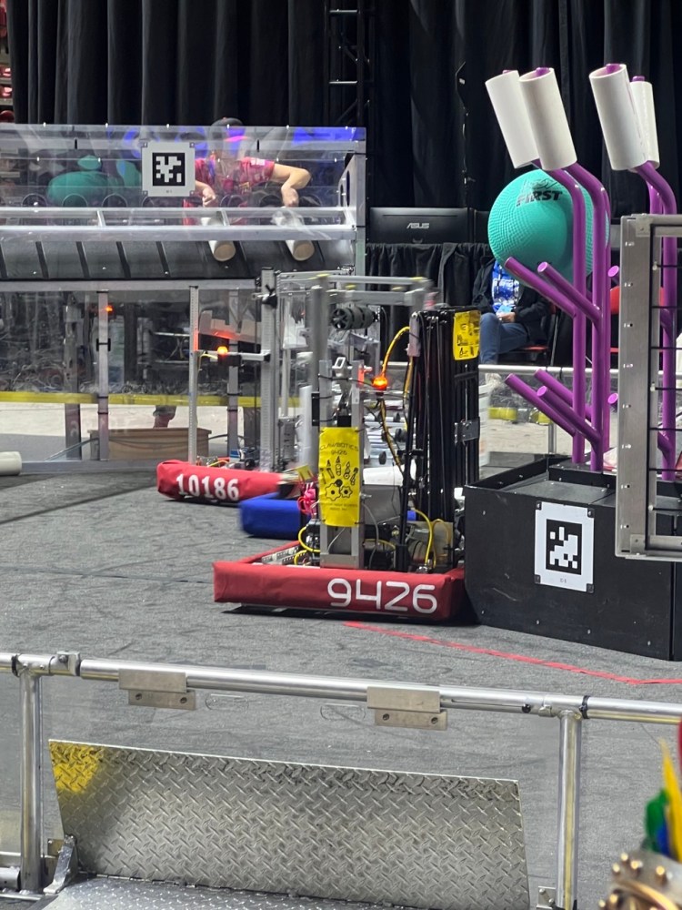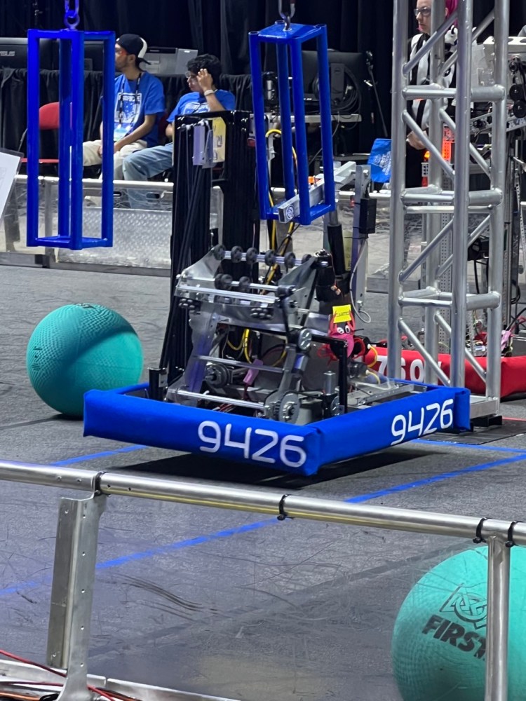 Claude is our competition robot for 2025 Reefscape. With a unique over-the-bumper floor pickup, a tall elevator, and a lightweight pneumatic actuator, it is capable of scoring on every level of the reef before moving to the barge for a shallow hang, powered by a linear actuator just like last year.